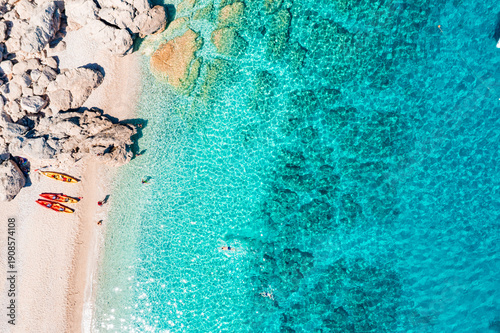 blue water, canoe, aerial view, tour tourism, sunny day, mediterranean sea, seascape, turquoise water, vacation, italy, travel destination, kayak, sardegna, paradise beach, topview, outdoor recreation, snorkeling, swimmer