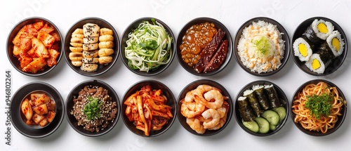 Top view collection of korean foods isolated on a white background