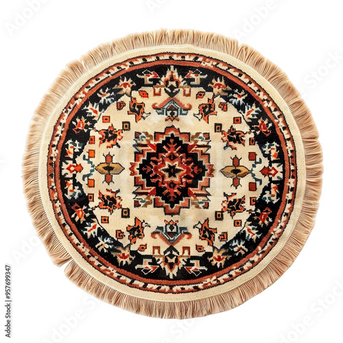 Top view of a tribal-patterned carpet isolated on a white transparent background