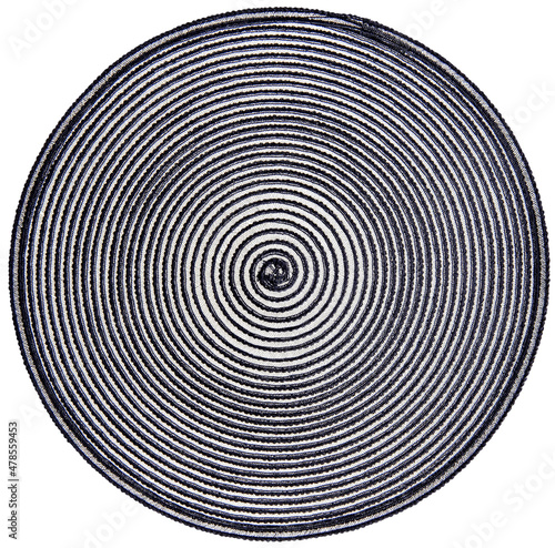 placemat, round, topview, woven, nobody, white background, black, studio shot, circle, dinner, fabric, fancy, isolated, no people, eatery, spiral, table, texture