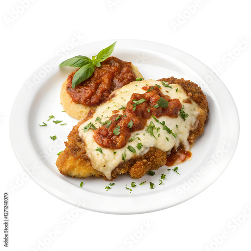 topview, breaded, chicken, cutlet, marinara, isolated, transparent, background, food, delicious, dish, savoury, italian, cheese, epicure, meal, eatery, cooked, hearty, culinary, tomatoes, tasty, plated, bistro, pasta, traditional, american, flavorful, homestyle, tender, fresh, cheesy