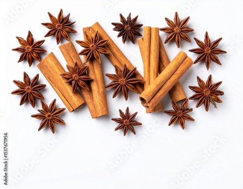 Top view of cinnamon stick and star anise spice isolated on white background Cinnamon