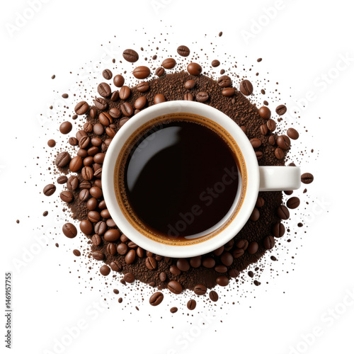 hot drink, cup, bean, black, drink, beverage, aroma, caffeine, roasted, hot, fresh, morning, breakfast, energy, dark, brown, white, mug, brewed, espresso, cafes, isolated, background, top, view, scatter, aromatic, delicious, epicure, java, seed, texture, favor, stimulant, refreshment, culinary, barista, grated, organic, rich, bold, warm, inviting