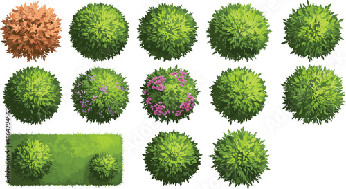 bush, green, brown, flower, shrub, garden, top, hedge, plant, leaf, landscaping, nature, foliage, decorative, topview