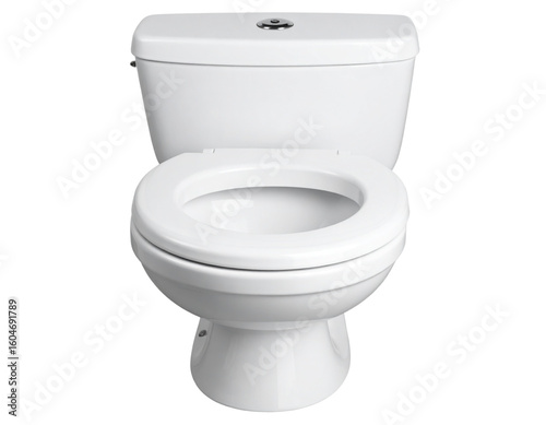 Top View of Open White Ceramic Toilet Bowl with Raised Lid, Isolated on Transparent Background