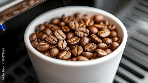 coffee bean, hot drink, bean, brown, dark, cup, white cup, container, topview, closeup, food, drink, beverage, cafes, cafes, espresso, brewing, roasting, agriculture, harvest, texture, aroma, smell, rich, dark brown, energy, morning, breakfast, lunch, caffeinated, stimulant, epicure, premium, quality, fresh, roasted, delicious, hot, warm, comfort