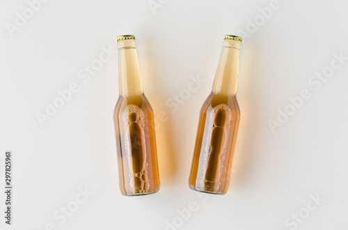 up high, advertising, alcohol, ales, beer, beverage, blank, bottle, branding, carbonated, clean, clear, container, craft, design, drink, glasses, lager, liquid, minimalist, mock-up, object, overhead, cardboard box, portfolio, presentation, product, simple, small, template, topview, white