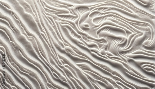 Top view of white fine sand grains forming intricate patterns of lines contrasting shadows, AI Generated