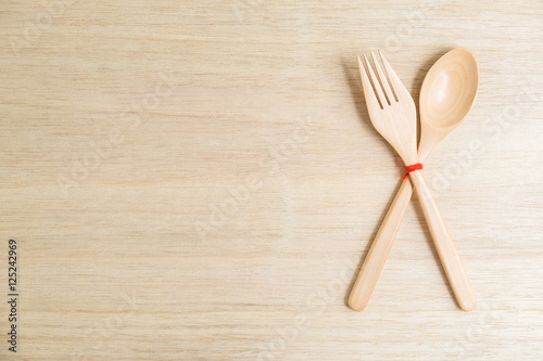 Top view of wooden fork and spoon