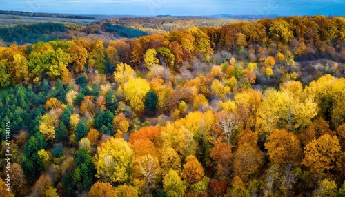 top view, Overhead colorful mixed autumn forest aerial background, made directly from above