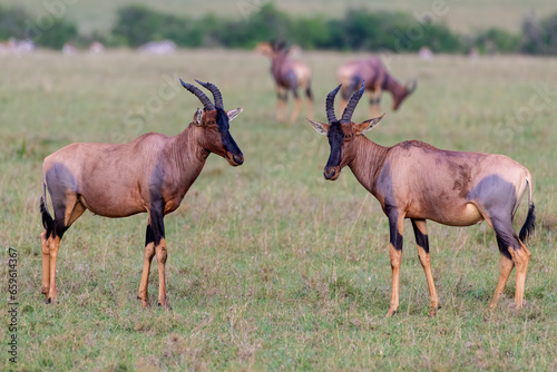 Topi males squaring off during the rut, Masai Mara, Kenya