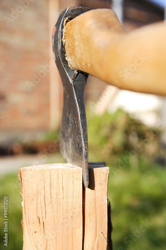 hatchet, firewood, wood, stump, instrument, blade, aged, work, yard, daytime, garden, handle, wooden, wood, metal, equipment, sharp, split, cleavage, cut, steel, lumber, danger, fall, rust-eaten, grass, heavy