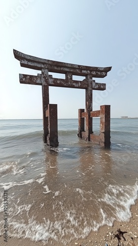 Torii Gate Seaside Shrine Shinto Religion Spiritual Symbol