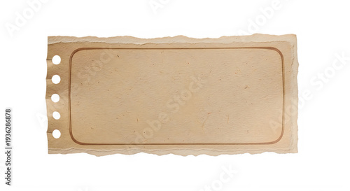 paper, ticket, stub, brown, torn, hole, perforated, edge, rectangular, vintage, retro, label, tags, scrap, cardboard, texture, old, ripped, fragment, isolated, transparent