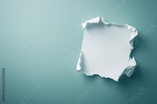 Torn White Paper with a Rough Texture on a Solid Light Blue Background Minimalist Design
