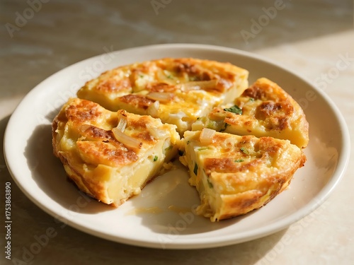 Tortilla Española (Spanish Omelette) A simple but iconic dish made with eggs, potatoes, and often onions, cooked into a thick omelette.