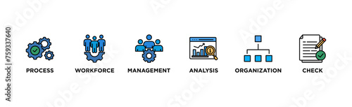 Total quality management banner web icon vector illustration concept with icon of process, workforce, management, analysis, organization and check