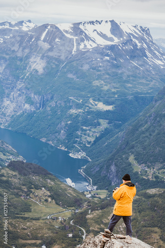Tourist taking photo from Dalsnibba viewpoint Norway