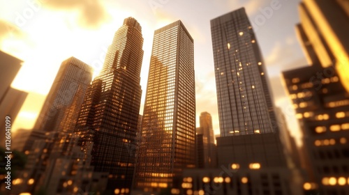 skyscraper, city landscape, urban, architecture, building, skyline, downtown, tower block, tower, glasses, steel, concrete, modern, city, metropolitan, panoramic, sunset, dusk, evening, gold, glowing, illuminated, window, light, business, financial, district, landscape, photo, architectural, design, planning, area, view, development, renewal, infrastructure, environment, living