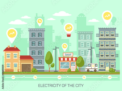 city, light, building, town, metropolis, vector, lamp, bulb, light bulb, electricity, social, growth, metropolitan, megalopolis, business, icon, signs, city landscape, technology, datum, street, environment, pollution, energy, eco, ecology, saving, reusing, renewable, skyline, house, home, urban, road, architecture, tree, skyscraper, innovation, service, infrastructure, connection, arrow, percent, infographic, chart, power, industry, alternative, flat