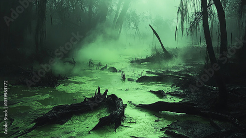 Toxic Swamp with Glowing Green Water