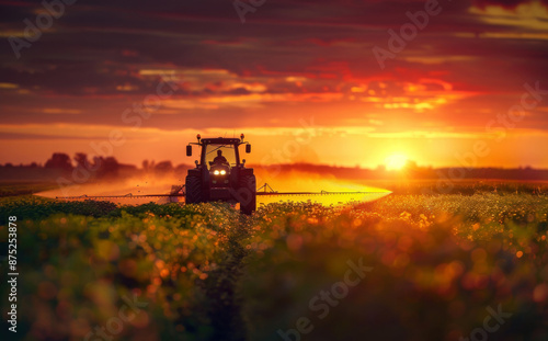 photo, horizontal, agriculture, color image, outdoors, farm, rural scene, no people, nature, tractor, plant, agricultural machinery, growth, land, spraying, aerial view, cultivated, day, social issue, equipment, environment, season, summer, harvesting, grass, spray, springtime, working, sky, chemical, insecticide, environmental conservation, water, environmental issue, dirt, vinery, freshness, food, tree, cultivated land