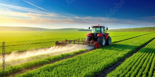 Tractor spraying pesticide fertilizer on a farm under a beautiful sky, agriculture, farming, tractor, pesticide, fertilizer, water