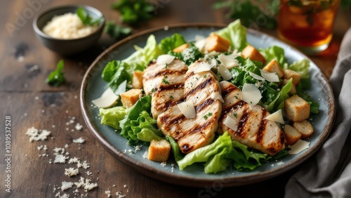 Traditional Caesar Salad with Grilled Chicken and Parmesan