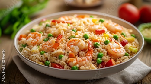 shrimp, vegetable, traditional, flavorful, savoury, dish, texture, favor, food, cultural, theme, detailed, fried rice, realistic, digital, high, quality, delicious, satisfying, closeup, prepared, epicure, meal, fresh, homemade, vibrant, dining, cookery, close-up view, tasty