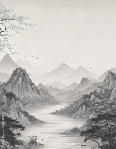 graphic, japanese, art, china, chinese, illustration, design, nature, style, background, beautiful, culture, spring, oriental, painting, vintage, white, water, asia, asian, traditional, brush, gold, ink, watercolor, abstract, paper, black, decorative, flower, lake, old, red, landscape, mountain, tree, japan, print, drawing, east, hill, history, vignetting, wallpaper, year, antique, isolated, new, cloud