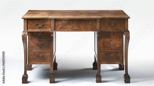 Traditional Desk isolate on white background: Elegant wood desk with storage drawers, combining classic design with functional organization for traditional office spaces.
