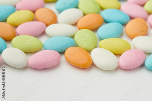 Traditional Easter Portuguese candies. Colorful sweets on white background.