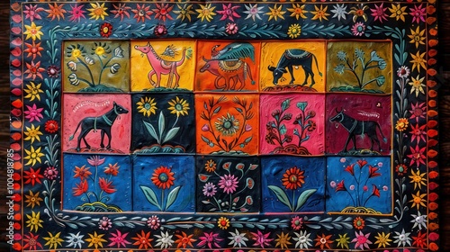 traditional, indian, painting, mythical, scene, intricate, border, hand-painted, folk, art, vibrant, colours, cultural, heritage, craftsmanship, decoration, aesthetic, unique, beauty, storytelling, creativity, design, detailed, ethnic, artistry, decorative, nature, history, pattern, colourful, whimsical, symbolic, iconic, celebration, folklore, narrative, charme, home, decor, spirituality, mythology, ornate