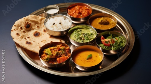 traditional Indian thali, a large platter filled with an array of different dishes,