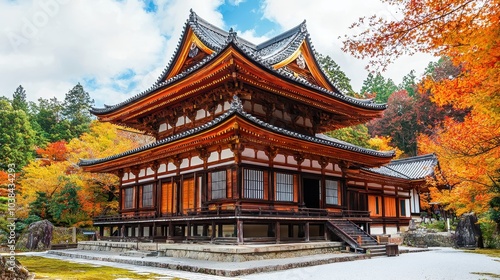 Traditional Japanese Temple Surrounded by Autumn Colors