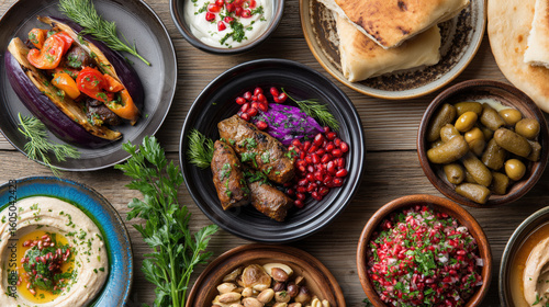 middle, eastern, cookery, stuffed, aubergine, traditional, food, pomegranate, hummus, herb, olive, pistachio, yogurt, parsley, colourful, dish, bowl, plate, table, dining, epicure, fresh, vegetable, culinary, feast, kitchen, assorted, mediterranean, favor, healthy, aromatic, savoury, hearty, ingredient, presentation, gathering, vibrant, tasteful, middle eastern, decoration, rustic, classic, cooked, assortment