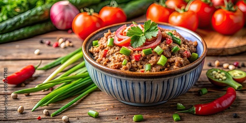 thai cuisine, spicey, dip, traditional, minced meat, tomatoes, flavorful, condiment, aromatic, chili, hot, homemade, delicious, exotic, culinary, ingredient, cooking, dish, cookery