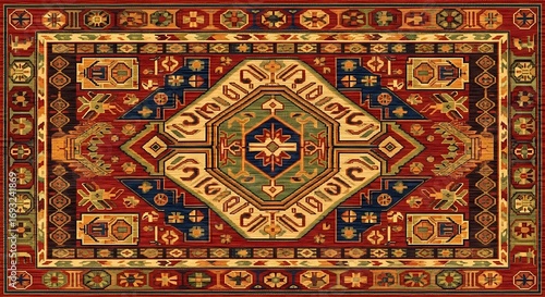 rug, carpet, oriental, persian, traditional, antique, vintage, textile, fabric, pattern, design, geometric, medallion, intricate, detailed, ornate, decorative, classic, ethnic, cultural, art, craft, hand-made, woven, wool, silk, floor, covering, home, decor, interior, decoration, luxury, rich, vibrant, colours, red, gold, blue, green, brown, texture, abstract, background, surface, old, ancient, heritage, craftsmanship