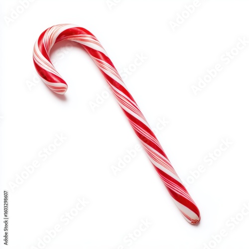 Traditional Red and White Candy Cane with Twist Stripe Isolated on Clean White Background