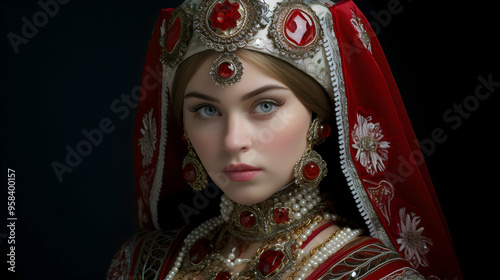 Traditional Russian sarafan and kokoshnik combination,