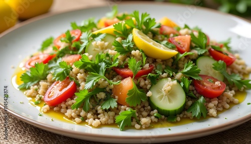 Traditional Tabbouleh Salad with Fresh Parsley, Tomatoes, and Cucumbers
