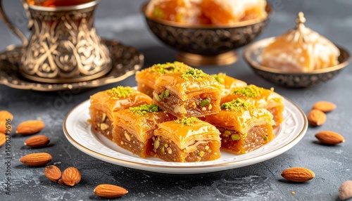 Traditional Turkish Dessert Selection on Elegant Plate