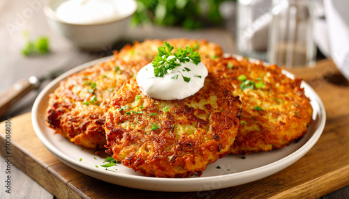 Tradycyjne placki ziemniaczane z kwaśną śmietaną