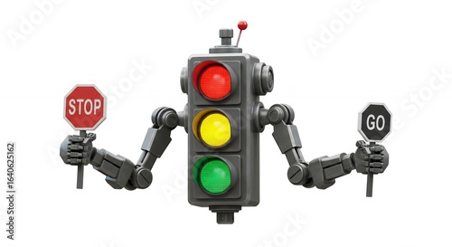 traffic light, robot, stoplight, technology, isolated, cartoon, illustration, digital artwork, red light, yellow light, green light, stop sign, graphic design, vector, white background, symbol, safety, artificial intelligence, digital illustration, communication, signs, mechanical, traffic, direction, computer graphic, education, design, presentation, graphic