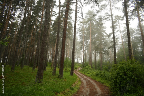 forest, trail, path, nature, landscape, road, green, wood, pine, autumn, wood, sun, park, spring, summer, fall, light, timberland, leaf, foliage, sunlight, fog, season, outdoors, sky, snow, winter, birch, trunk, blue, spruce, day