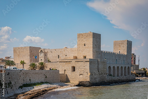 summer, andria, castle, europa, ancient, old, colours, hot, summer, day, trani, italian, italy, italy, apulia, apulia, cathedral, romanesque, architecture, exterior, facades, travel, window, blue, cloudy, seafront, religion, roof, imposing, holiday maker, sea, tour tourism, majestic, church, southern, style, coast, touristic, water, slope