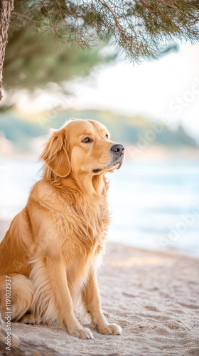 gold, retriever, close, up, shade, beach, dog, relaxation, calm, serene, sitting, sunlight, peaceful, furry, pet, friendly, companion, nature, outdoors, sunny, sand, water, tree, gentle, loyal, canino, summer, animal, portrait, fluffy, breezy, calmness, landscape, vacation, leisure, idylli, cute, warmth, solitude, harmony, breeze, shelter, coast