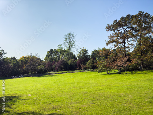 park, landscape, greengrass, tree, clear sky, calmness, nature, serenity, relaxation, biodiversity, sunlight, summer day, scenic view, open space, foreground, background, natural beauty, flora, summer, shade, calmness, greenery, scenic beauty, leisure