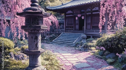 temple, garden, japanese, stone, lantern, path, stair, pagoda, building, serenity, calmness, peace, nature, blossom, pink, purple, flower, tree, foliage, zen, aesthetic, landscape, architecture, design, masonry, light, shadow, detail, calm, quiet, spiritual, beauty, spring, vibrant, colours, illumination, structure, element, harmony, blosson, ancient, delicate