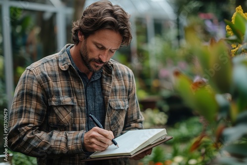 Tranquil Moments: Man Finding Solace and Processing Stress through Journaling in Serene Garden Setting
